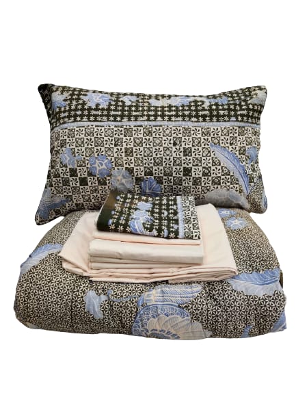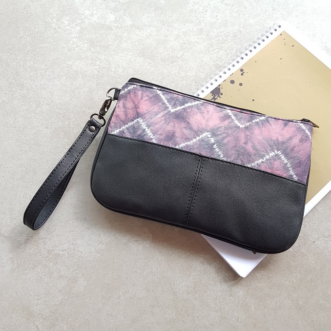 Made from ikat woven material, premium faux leather, cotton inner, black nickel accessories, zipper.
