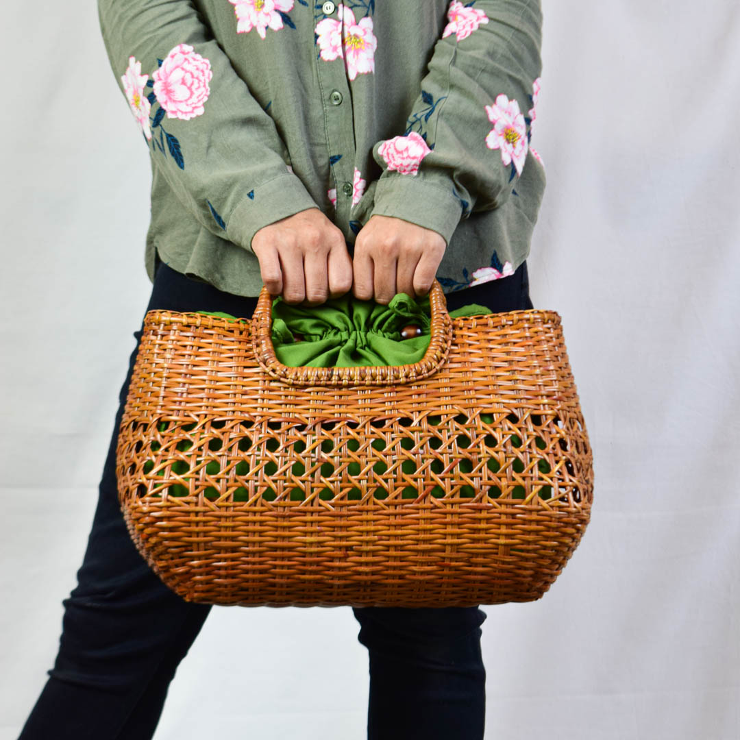 The combination of horizontal woven rattan and motoera into a single design of a large tote bag that is quite light in weight. We present JOVINKA to help the owner carry many important items.