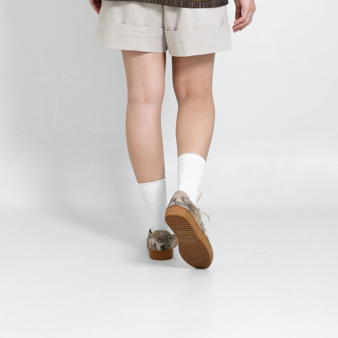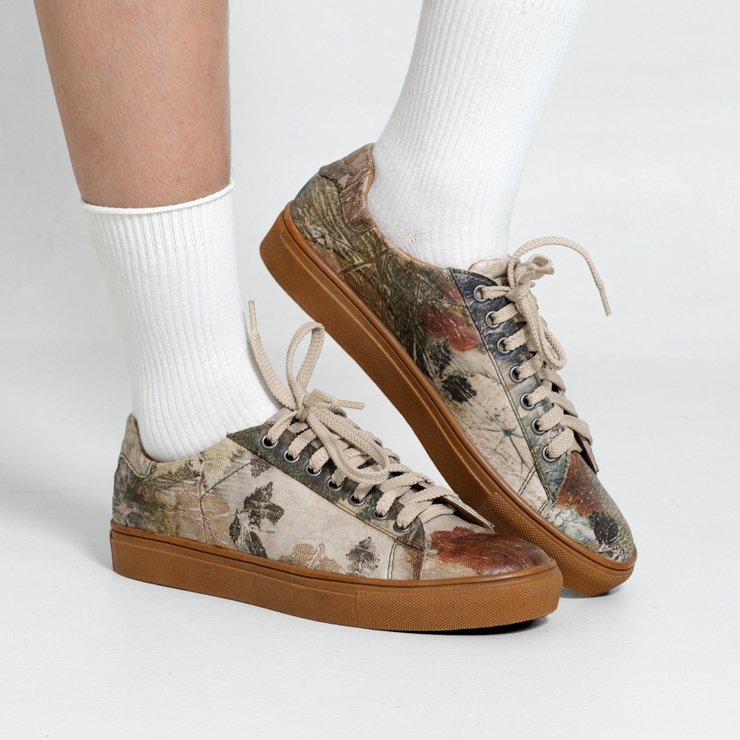 Ecoprint Batik Dahon yang merupakan produk ramah lingkungan juga memiliki produk turunannya seperti sepatu. Sepatu berbahan dasar kulit yang dibalut dengan sentuhan kain ecoprint Batik Dahon terlihat sangat unik, menarik, dan stylish. Tersedia dalam berbagai ukuran untuk laki-laki maupun perempuan dengan berbagai model yang kekinian dapat digunakan untuk generasi milenial.