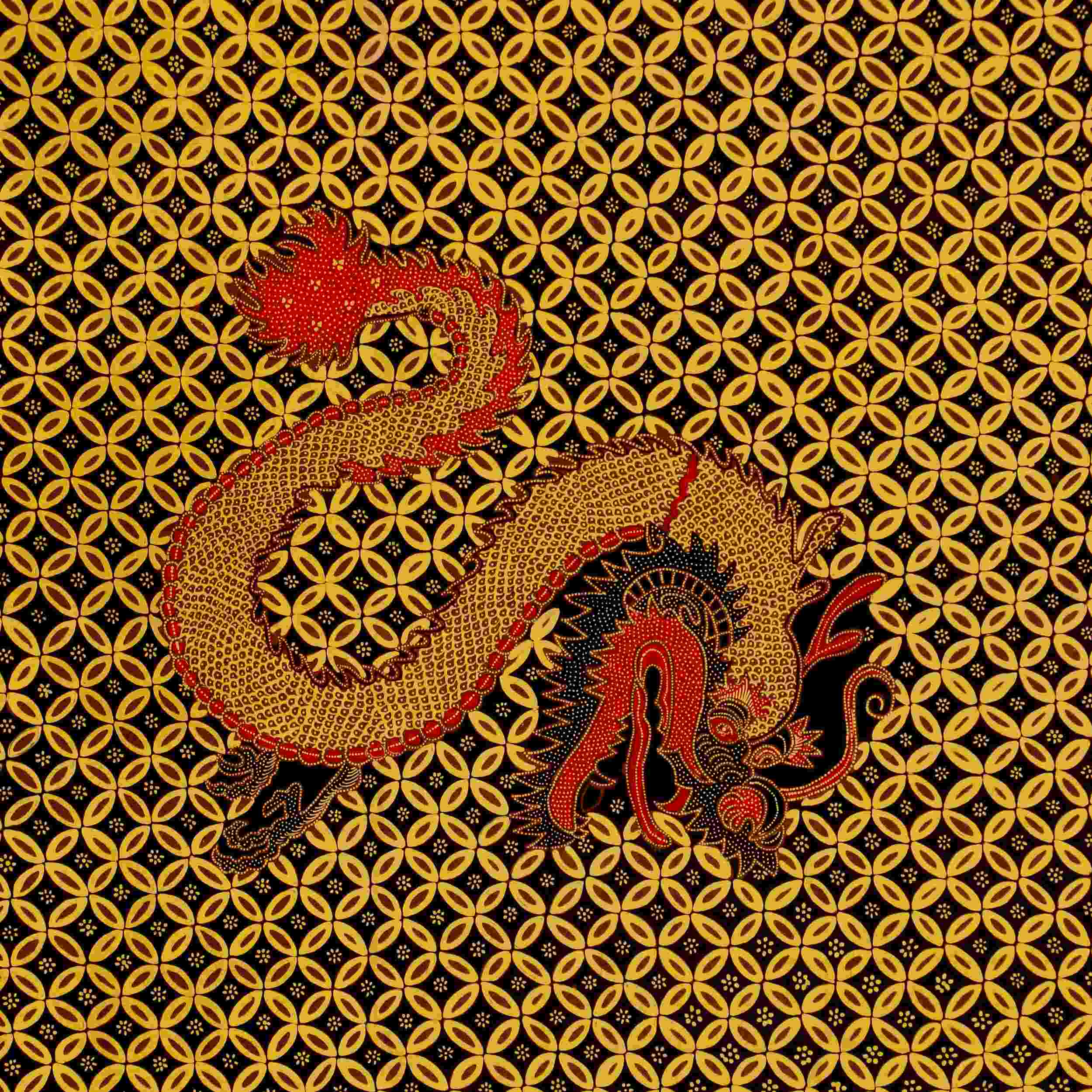 Pattern Meaning: Batik Kawung adalah motif batik yang bentuknya berupa bulatan mirip buah kawung (sejenis kelapa atau kadang juga dianggap sebagai aren atau kolang-kaling) yang ditata rapi secara geometris. Kadang, motif ini juga ditafsirkan sebagai gambar bunga lotus (teratai) dengan empat lembar mahkota bunga yang merekah. Lotus adalah bunga yang melambangkan umur panjang dan kesucian. Menurut kepercayaan orang Tionghoa, dimana naga merupakan salah satu anggota shio nya, Naga digambarkan sebagai sebuah sosok yang adidaya, dimana merupakan binatang yang kuat dan besar. Selain itu naga juga merupakan simbol keberuntungan.