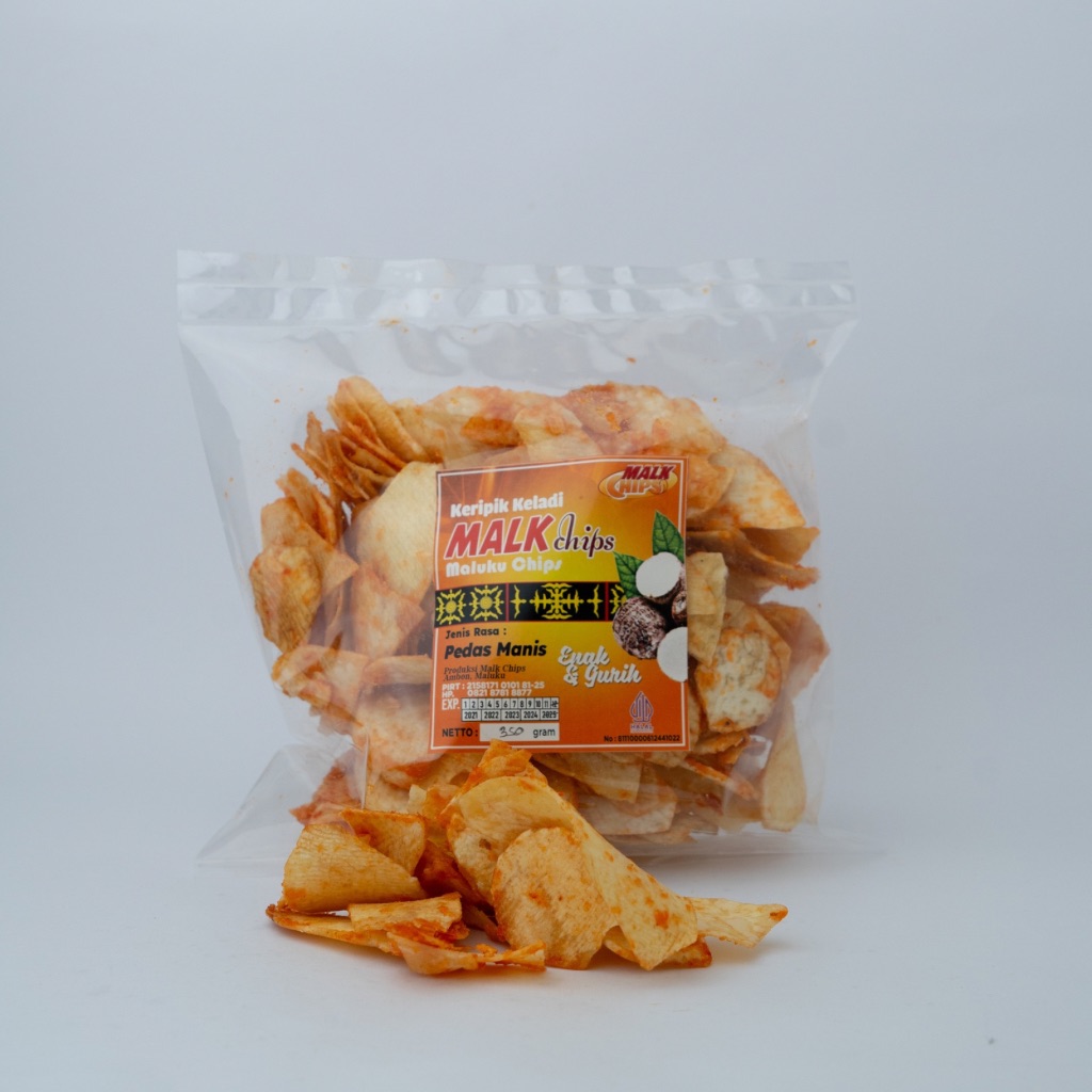 MALK Chips taro chips are snacks made from natural taro without fertilizer Processed still manually but using standard SOPs made without a soaking process and displayed directly on a pan, MALK Chips taro chips do not use preservatives and are packaged using standing pouch packaging and various sizes and variants such as spicy, sweet, salty, savory and original and using this special concoction that distinguishes us from others. MALK Chips taro chips are healthy, tasty and savory once you want to try again and again.