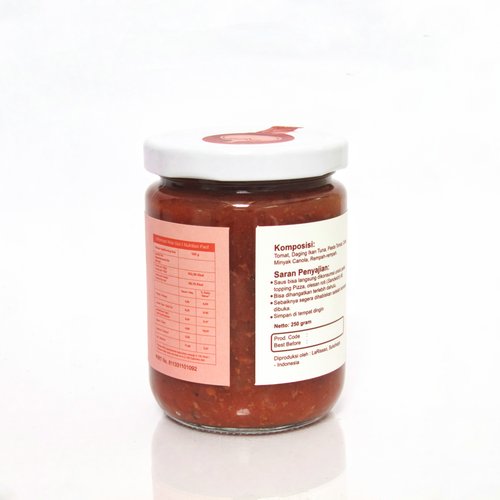 LaRissso Pasta Sauce Spicy Tuna variant is a spicy pasta sauce made from natural ingredients, namely fresh tomatoes harvested directly from the farmers, plus tuna fish flakes, cooked using canola oil and selected spices, and also a blend of Italian herbs. and local spices to create a unique pasta sauce that is slightly sour, fresh, savory and also spicy. In addition to pasta, this sauce is also suitable for spreading bread, pizza, dipping french fries, nachos, and even as a seasoning for fried rice.