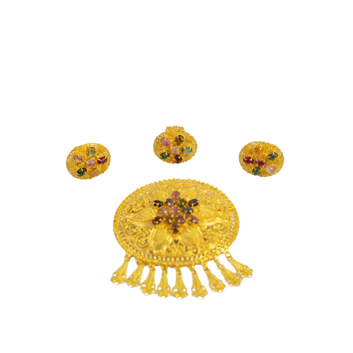 Produk ini berbahan baku kaca bening dengan kuningan emas