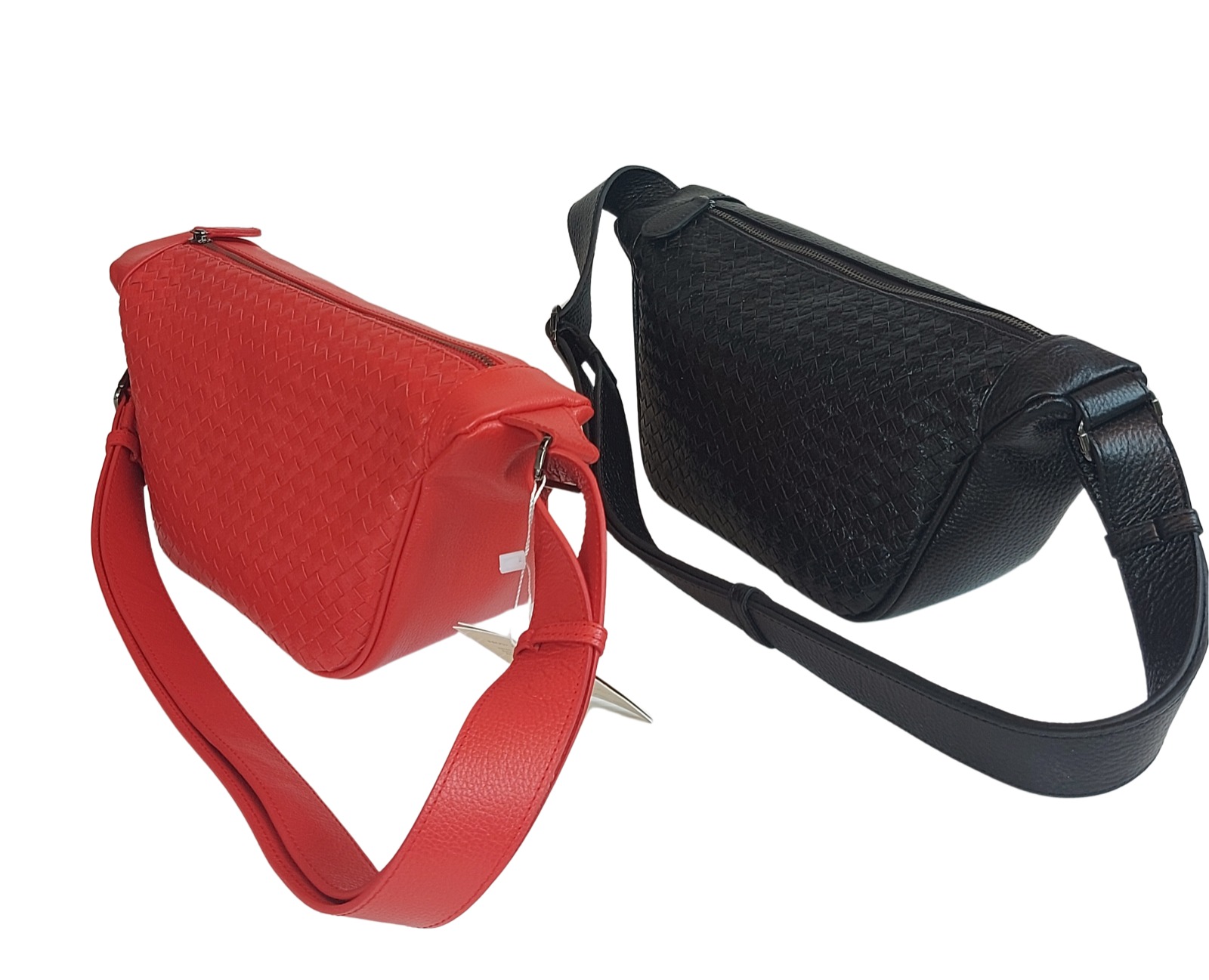 Banyu bag, made of woven genuine cowhide leather with zipper closure. The genuine cowhide leather strap is adjustable in length. The interior is lined with suede fabric, complete with two inner pockets and one zipper pocket. Perfect sling bag for men and women.