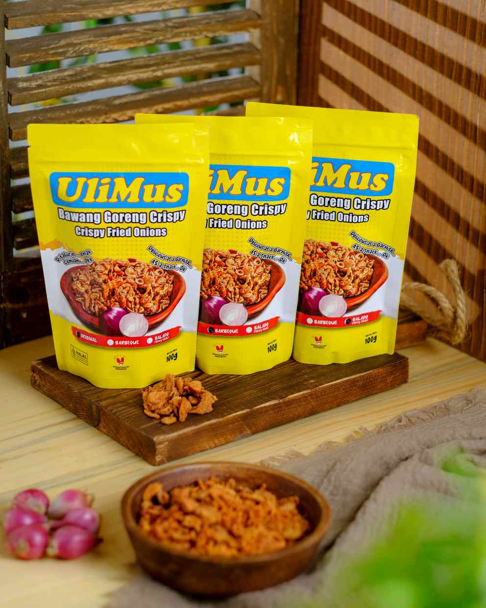I started my ULiMus Crispy Fried Onions business in 2020 due to children's dislike of fried onions. Created by trial and error UliMus Crispy Fried Onions was born. My children loved my crispy fried onions. In June 2022 I joined MSME Jakpreneur from the DKI Jakarta Government, Ulimus crispy fried onions, are premium quality fried onions to suit your taste. Enjoy the savory and crunchy sensation of our delicious fried onions. We also have legal permits such as, HALAL, MD-BPOM, P-IRT, has been tested by a recognized laboratory. Ulimus Crispy Fried Onions are a fusion of traditional meets new age. Delicious as a garnish ... Even tastier as a snack, in 3 flavor variants:* Original, * Barbeque, * Balado.