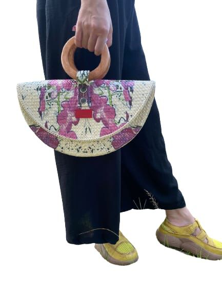 Clutch ini merupakan hasil dari kreasi decoupage dengan keunikan di motifnya yang berasal dari tissue bermotif di atas media anyaman pandan dengan handle kayu. Inovasi kami di clutch ini adalah dengan menggunakan tissue dengan motif kearifan lokal khas Bangka Belitung yaitu Bunga Anggrek Pensil. Clutch ini memiliki ukuran yang medium, stok tersedia dan bisa dipesan dalam jumlah banyak dengan sistem PO. Serta bisa juga costum motif nya.