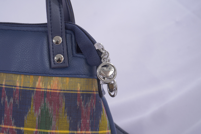 Tas yang terbuat dari kain tenun tajung ini dipadukan kulit sintetis premium. Bagian dalam tas ini disertai kantong terbuka