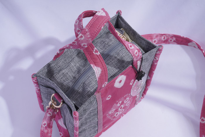 Tas jinjing dari kain semi kanvas kagawa dengan paduan kain jumputan