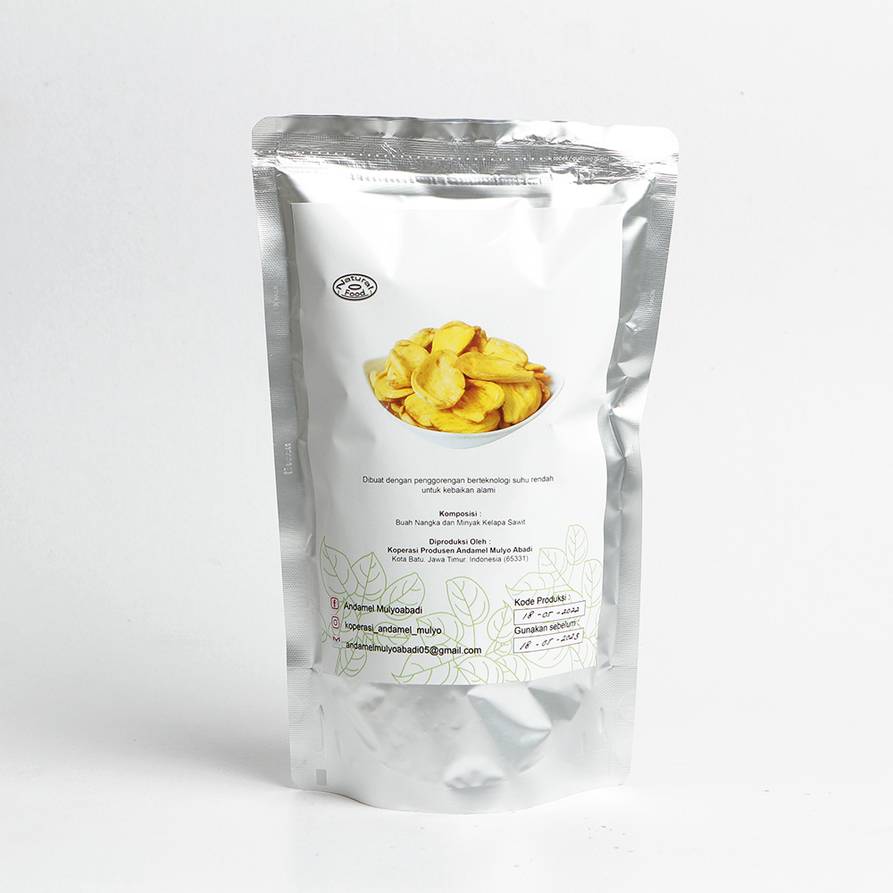 keripik hasil olahan buah nangka yang digoreng dengan cara khusus, biasanya menggunakan mesin penggoreng hampa