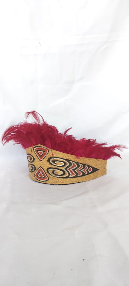 Mahkota Ukiran motif Papua bulu ayam polos