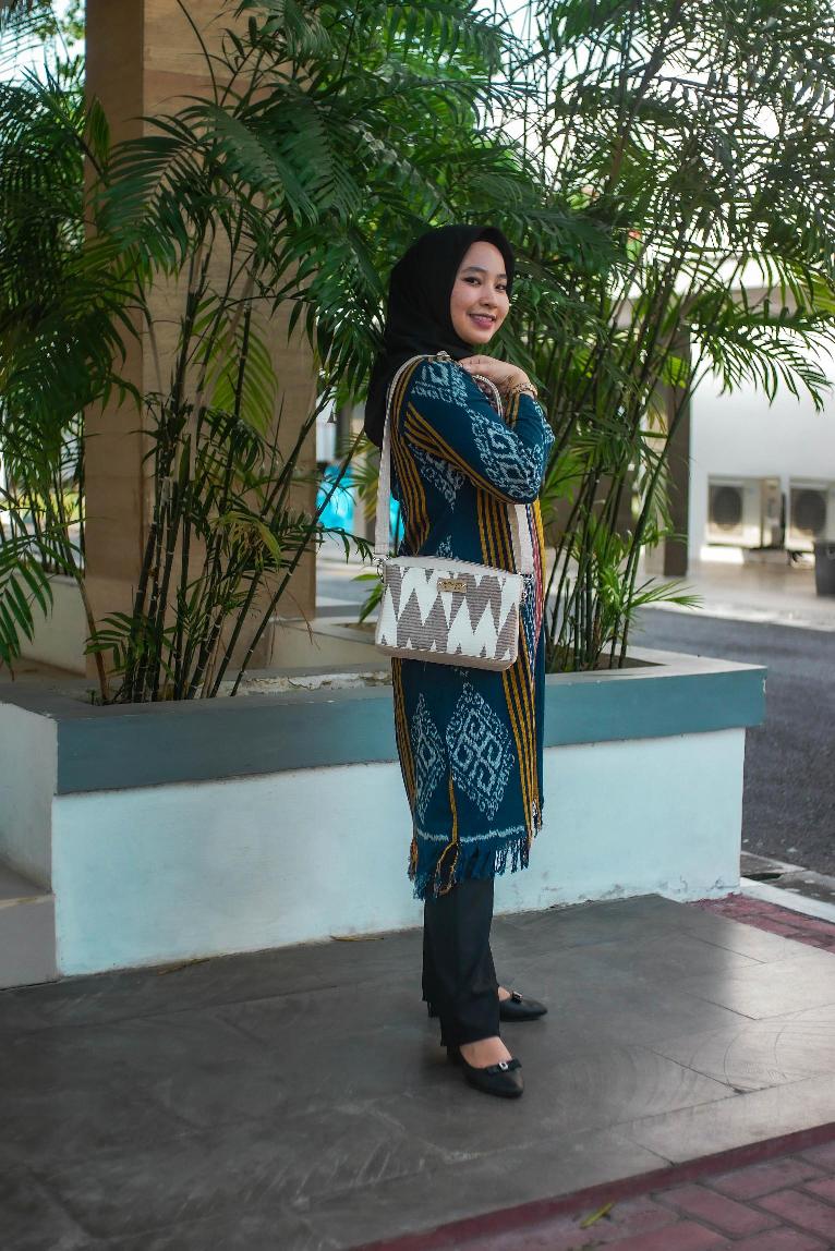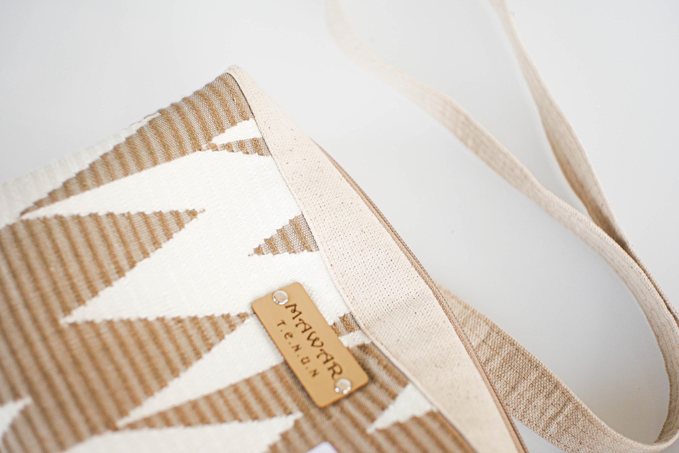Produk ini dihasilkan menggunakan motif kain tenun rang-rang, dari sisa kain tenun yang salah jahit. Tahan hujan, tidak tembus air