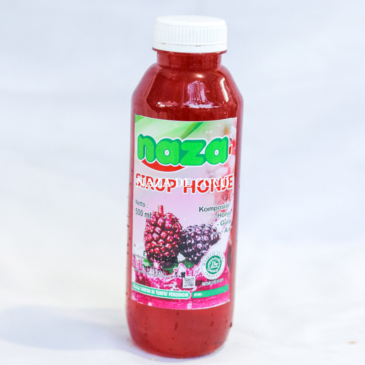 Naza Sirup Honje adalah minuman yang berasal dari buah tanaman kecombrang. Memiliki warna merah yang cantik serta memiliki rasa dan aroma yang khas. Rasa asam dari minuman ini sangat pas sekali tidak terlalu asam sehingga sangat cocok untuk dikonsumsi di siang hari. Sirup Honje dapat di komsumsi dengan menggunakan air hangat maupun air dingin. Lebih enak di sajikan dengan air dingin.