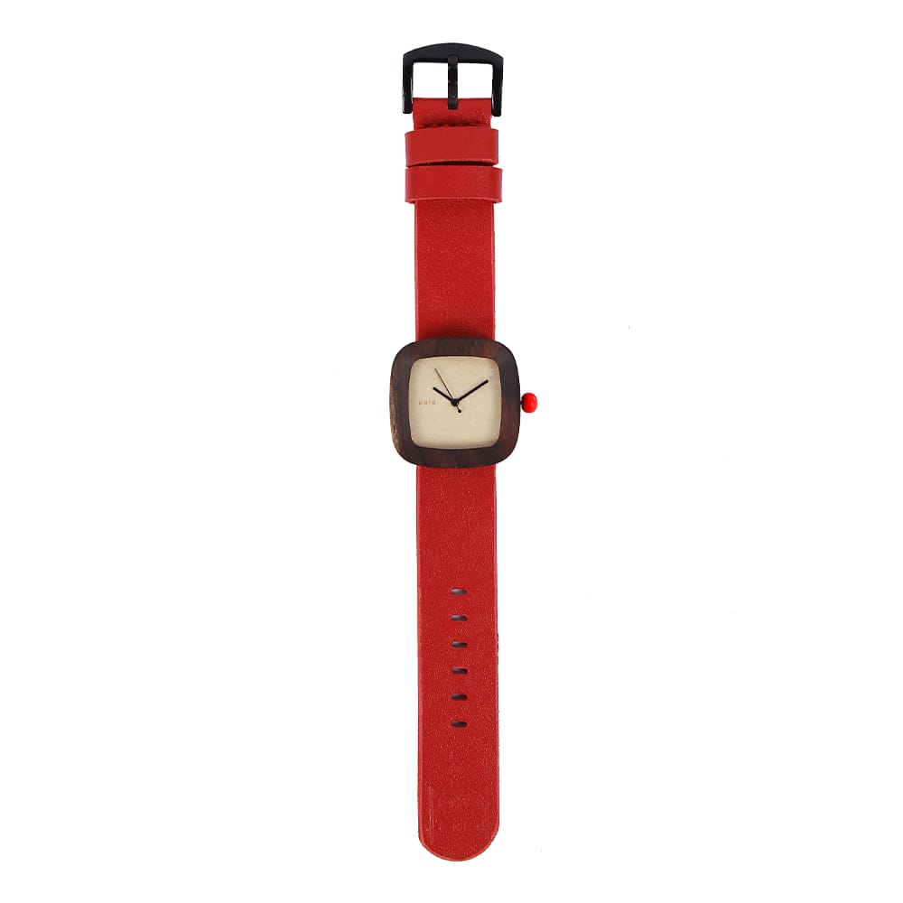Warna merah yang mendominasi jam tangan PALA Merah memiliki makna mendalam yang diambil dari filosofi warna alam pada pahatan kayu khas Toraja.
