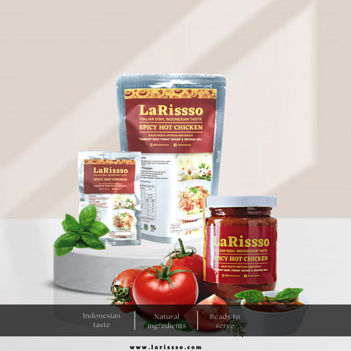 Saus Pasta Spicy Hot Chicken LaRissso merupakan saus pasta extra pedas yang terbuat dari bahan-bahan natural yaitu tomat segar yang dipanen langsung dari para petani, ditambah dengan potongan dada ayam cincang, kemudian dimasak menggunakan minyak canola ditambah dengan bumbu-bumbu juga perpaduan Italian herbs dan rempah lokal sehingga menciptakan rasa yang segar sedikit asam, gurih dan sangat pedas. Selain pasta saus ini juga cocok untuk olesan roti, pizza, cocolan kentang goreng, nachos, bahkan juga bias digunakan sebagai bumbu nasi goreng.