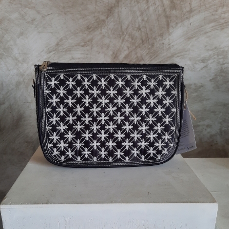 Clutch etnik ini merupakan produk handmade yang dibuat dengan penuh ketelitian, menggunakan material kombinasi antara kain suede yang lembut dan kain songket khas Aceh yang sarat akan nilai budaya. Perpaduan kedua material ini menciptakan tampilan yang elegan sekaligus mencerminkan kekayaan warisan lokal.