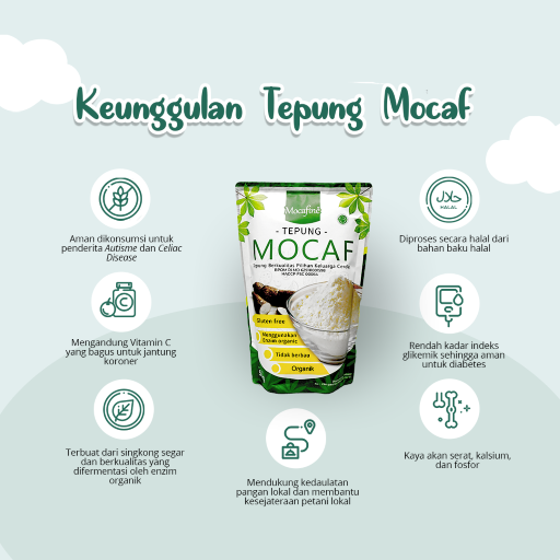 PT. Rumah Mocaf Indonesia adalah produsen dan eksportir tepung mocaf bebas gluten dari singkong yang dapat digunakan sebagai bahan utama untuk memanggang dan memasak. Rumah Mocaf pertama kali dirintis sebagai program pemberdayaan petani singkong di Banjarnegara, Indonesia pada tahun 2014. Proyek ini berkembang menjadi industri berbasis sociopreneur sejak tahun 2017 dan kami telah bekerjasama dengan lebih dari 452 petani yang terbagi dalam 11 Kelompok Tani Singkong binaan. Rumah Mocaf berkomitmen untuk membangun lingkungan bisnis yang berkelanjutan dan bertanggung jawab. Dalam upaya mencapai tujuan tersebut kami bekerja sama dengan Kelompok Tani Singkong kami untuk menerapkan pertanian yang ramah lingkungan dan terintegrasi