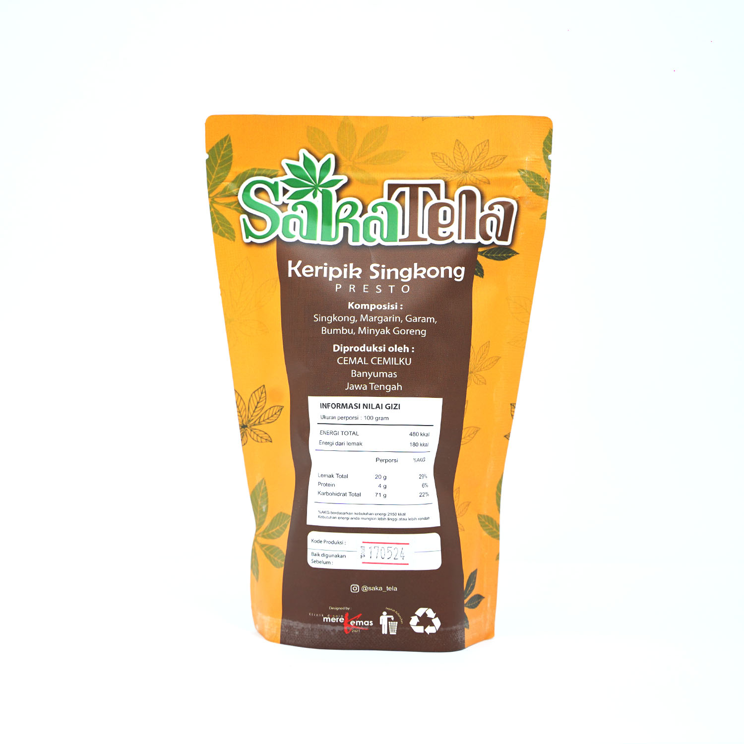 Sakatela adalah keripik singkong yang terbuat dari bahan-bahan berkualitas, melalui proses perebusan sebelum digoreng, menjadikan keripik ini teksturnya lembut dan renyah yang membuatnya berbeda dengan keripik singkong yang ada di pasaran. Irisan yang kecil memudahkan untuk dikonsumsi dan proses spinner setelah digoreng membuat rasa sakatela semakin gurih dan renyah. Sakatela memiliki legalitas berupa PIRT, Halal dan HKI. Umur simpan produk 10 bulan