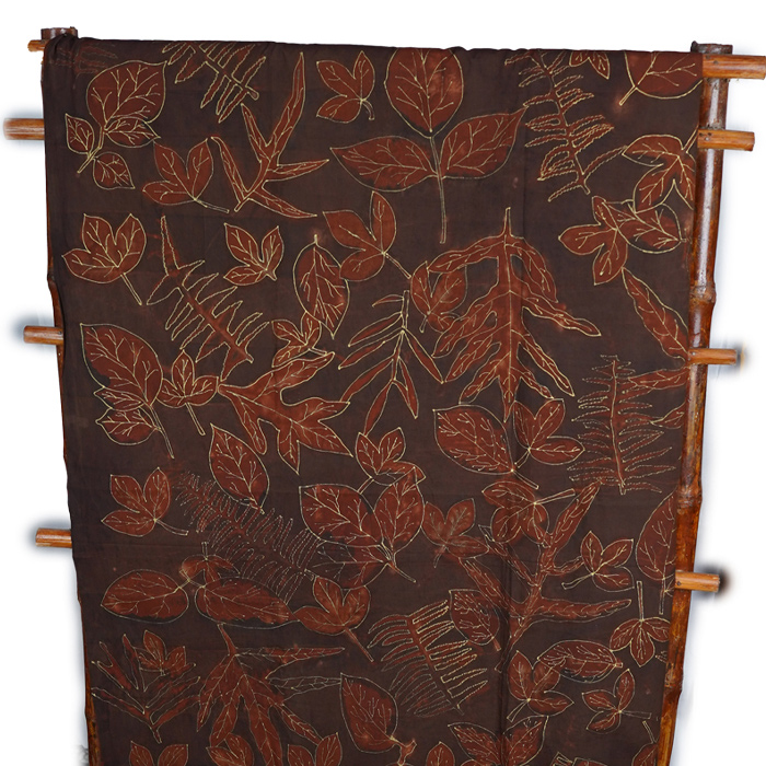 Makna Motif: Mengambarkan daun-daun dan bunga-bunga tropis yang ada di sekitar seperti paku-pakuan, daun lanang, bunga kenikir, melati dan lain sebagainya, yang tampil menarik dengan warna alami coklat dari kayu tingi.