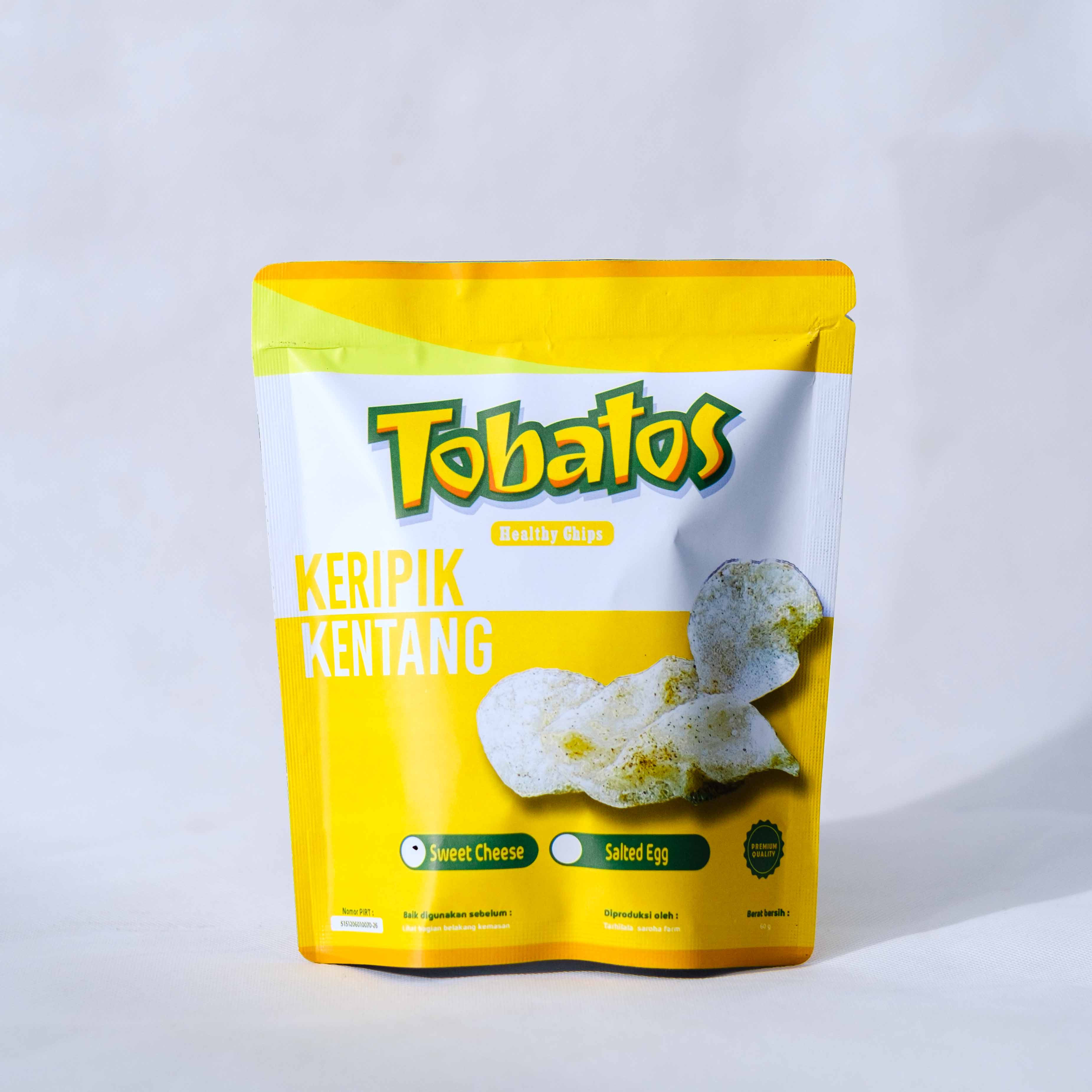 Keripik Kentang Tobatos diproduksi menggunakan bahan dasar kentang yang dihasilkan dari kebun sendiri milik UMKM. Keripik Tobatos sudah tersertifikasi halal.